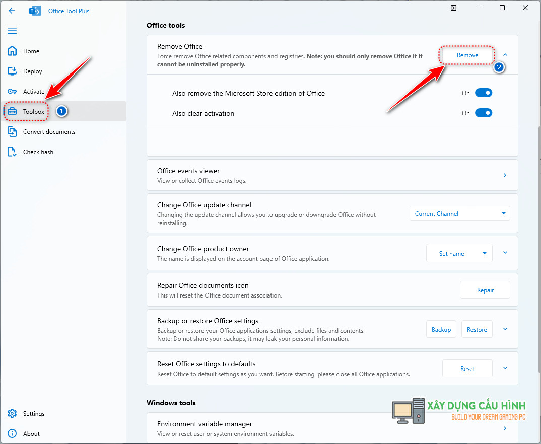 2. Các bước xoá sạch Office bằng Office Tool Plus