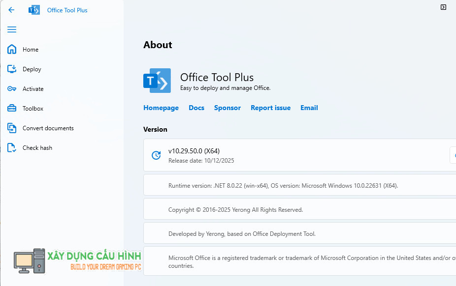 - Cẩn trọng: Office Tool Plus là công cụ can thiệp sâu vào hệ thống, bạn không nên tự ý bấm vào các tính năng khác nếu không rõ tác dụng.